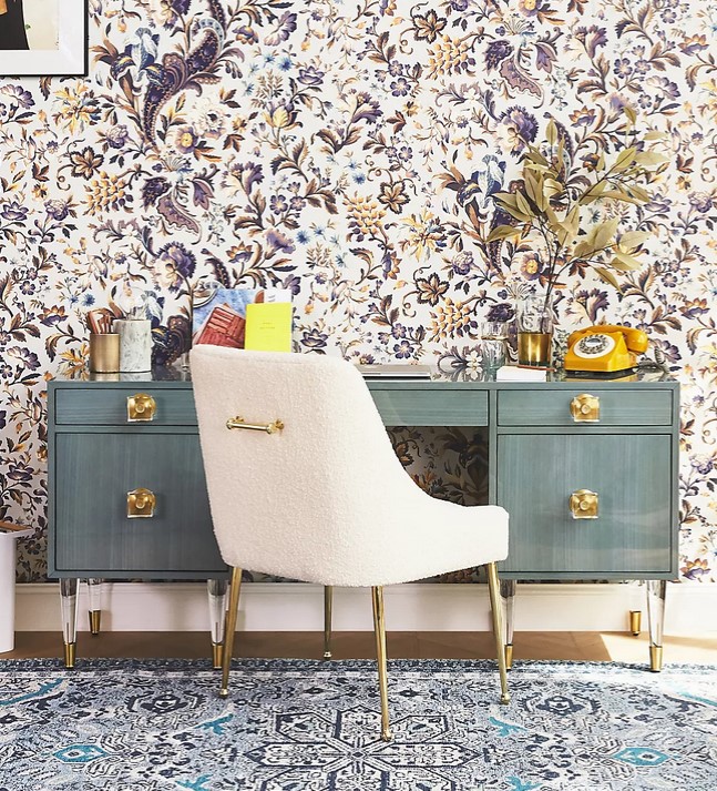 I’ll admit that I am not a particularly elegant individual. I struggle with lipstick and despise clothing that doesn’t feel like pajamas. However, a glamorous desk can make you feel a bit cool & somewhat collected. The lacquered regency desk below from Anthropologie is pricey, but offers four drawers (spaces to wrangle your stuff.) Find the details here. Fans on a budget can consider our Amazon pick.